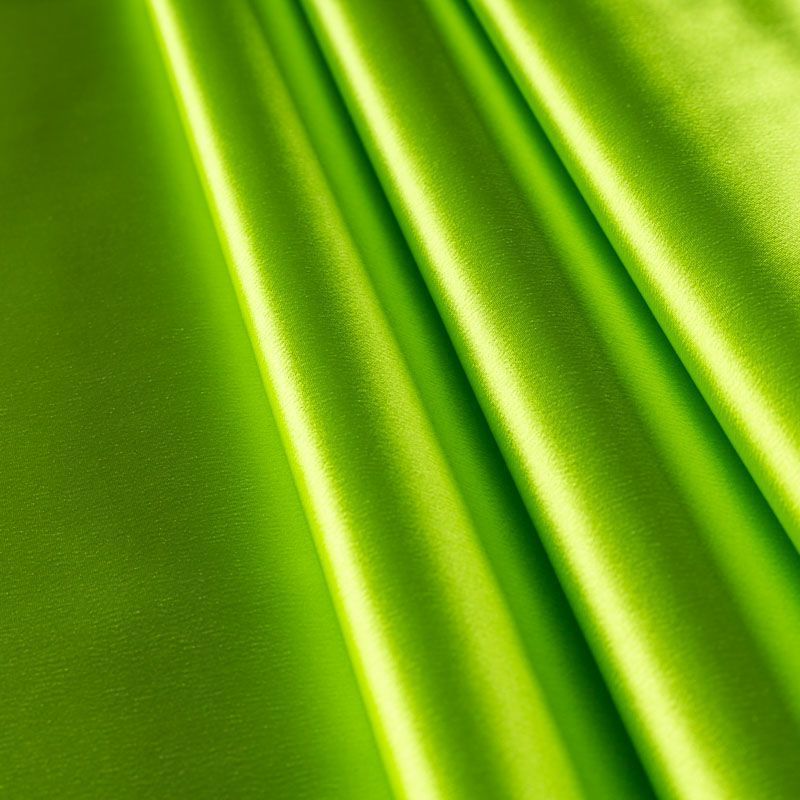 Итальянский костюмно-плательный атлас ватуссо яркого светлого оттенка лайма. Ткань плотная, но пластичная, хорошо держит форму и отлично тянется, собирается в красивые складки и драпировки. Почти не мнется, очень удобный и практичный. Блеск умеренный, смотрится дорого, благородно. Подойдет для пошива прямых силуэтов-футляров, приталенных платьев с пышной юбкой и крупными драпировками, изделий с заложенными складками, нарядных изделий, вечерних костюмов, летнего пальто, юбки, для изготовления корсетов.