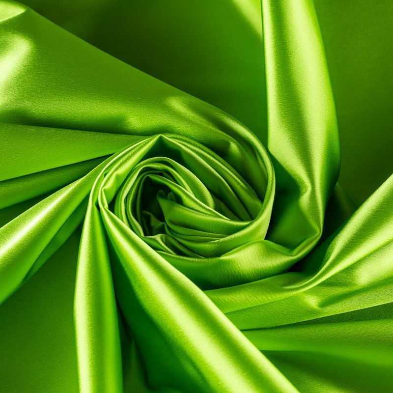 Итальянский костюмно-плательный атлас ватуссо насыщенного оттенка спелого лайма. Ткань плотная, но пластичная, хорошо держит форму и отлично тянется, собирается в красивые складки и драпировки. Почти не мнется, очень удобный и практичный. Блеск умеренный, смотрится дорого, благородно. Подойдет для пошива прямых силуэтов-футляров, приталенных платьев с пышной юбкой и крупными драпировками, изделий с заложенными складками, нарядных изделий, вечерних костюмов, летнего пальто, юбки, для изготовления корсетов.