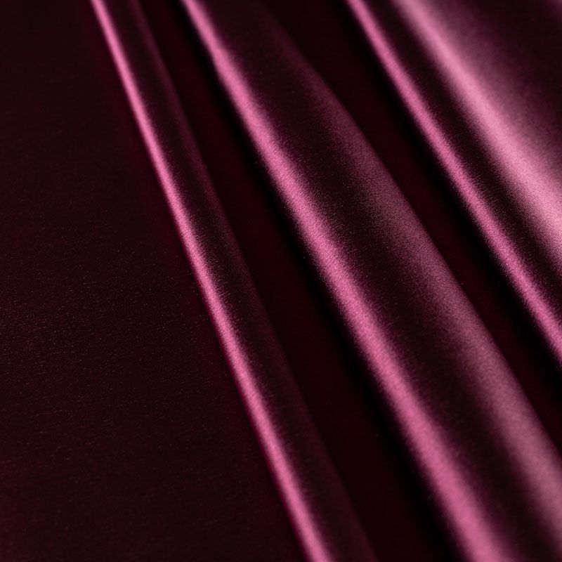Итальянский костюмно-плательный атлас ватуссо винного оттенка. Ткань плотная, но пластичная, хорошо держит форму и отлично тянется, собирается в красивые складки и драпировки. Почти не мнется, очень удобный и практичный. Блеск умеренный, смотрится дорого, благородно. Подойдет для пошива прямых силуэтов-футляров, приталенных платьев с пышной юбкой и крупными драпировками, изделий с заложенными складками, нарядных изделий, вечерних костюмов, летнего пальто, юбки, для изготовления корсетов.