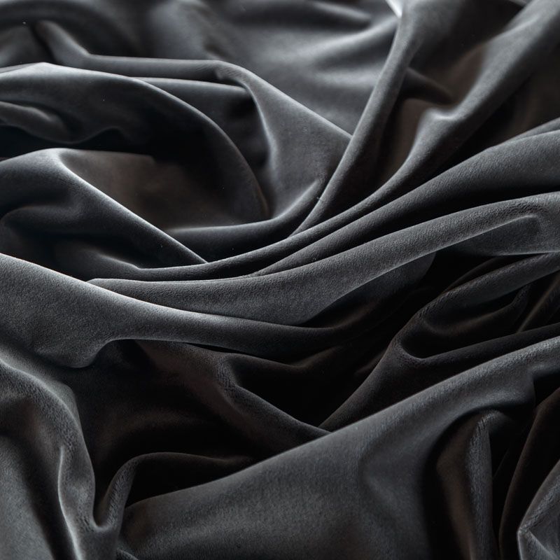 Хлопковый бархат серого оттенка. Ткань плотная, мягкая с коротким ворсом. Не грубая, хорошо драпируется. Имеет благородный матовый оттенок. Подойдет для пошива нарядного костюма, жакета, юбки, жилета, шорт, комбинезонов, брюк, платья-футляр, легкого пальто или бомбера.