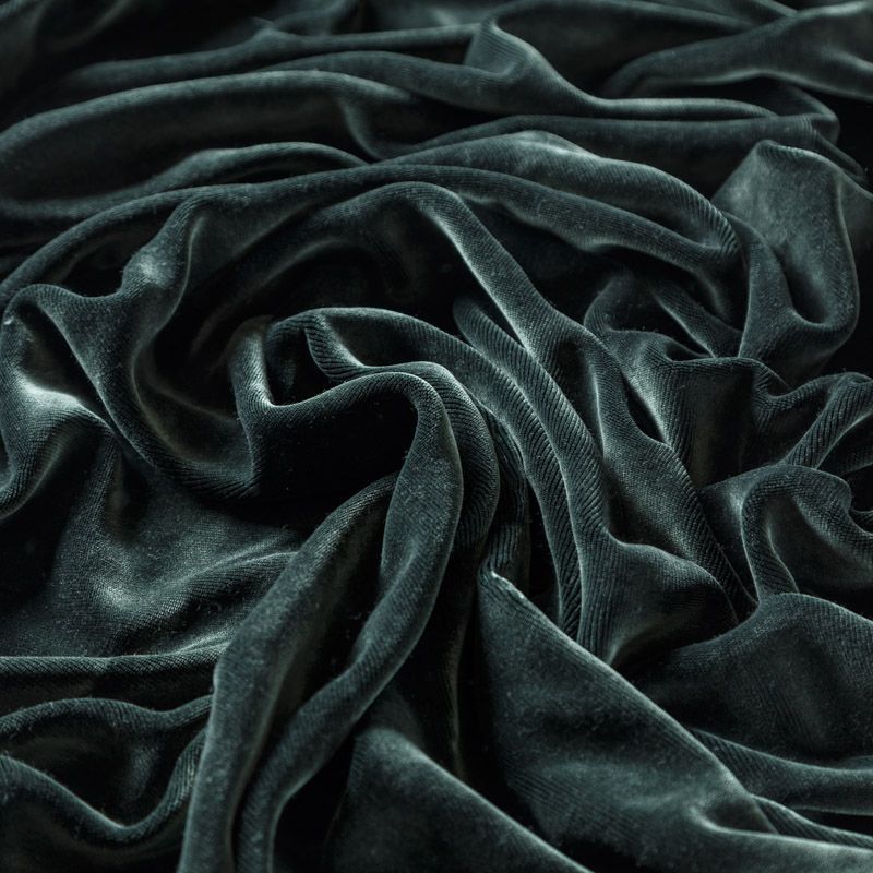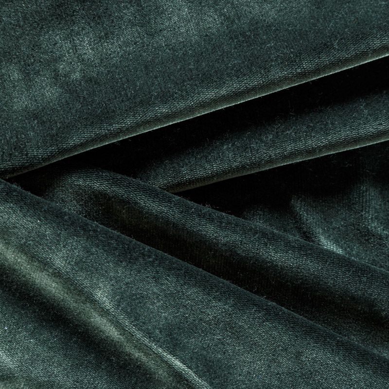 Хлопковый бархат припыленного темно-зеленого оттенка. Ткань плотная, мягкая с коротким ворсом, отлично держит форму. Имеет благородный матовый оттенок. Подойдет для пошива нарядного костюма, жакета, юбки, жилета, шорт, комбинезонов, брюк, платья-футляр, легкого пальто или бомбера.
