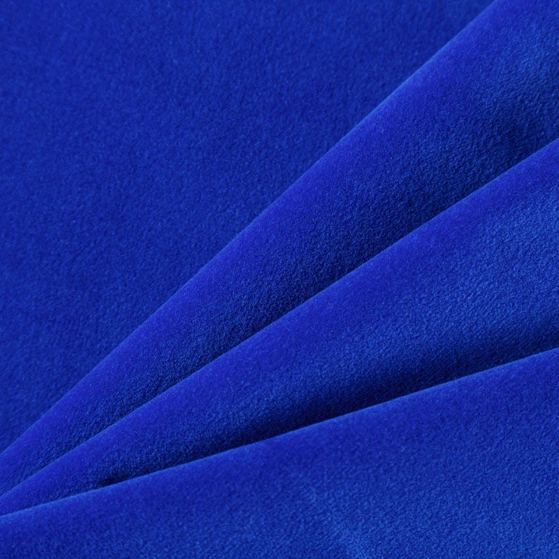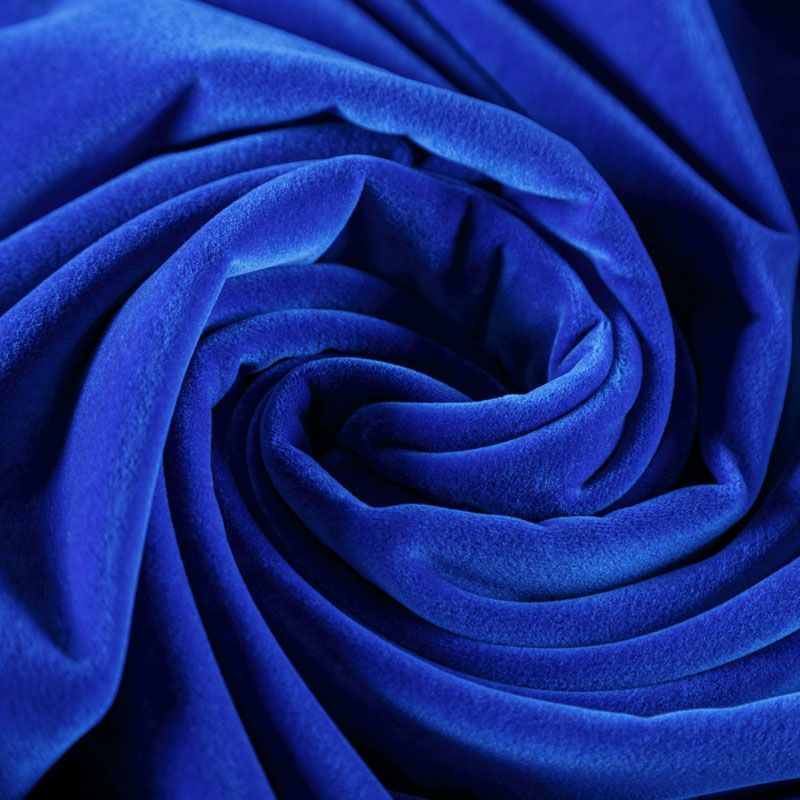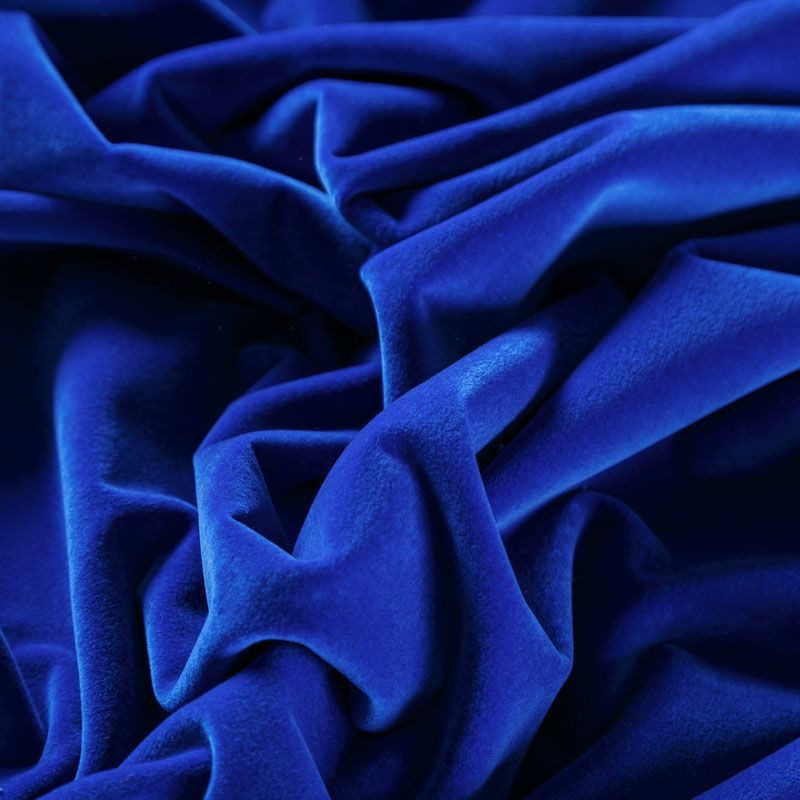 Хлопковый итальянский бархат синего цвета. Ткань плотная, мягкая с коротким ворсом. Не грубая, хорошо драпируется. Имеет благородный матовый оттенок. Подойдет для пошива нарядного костюма, жакета, юбки, жилета, шорт, комбинезонов, брюк, платья-футляр, легкого пальто или бомбера.