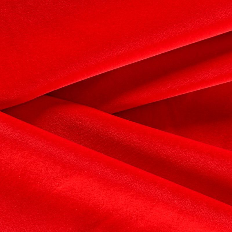 Хлопковый итальянский бархат красивого красного оттенка. Ткань плотная, мягкая с коротким ворсом. Не грубая, хорошо драпируется. Имеет благородный матовый оттенок. Подойдет для пошива нарядного костюма, жакета, юбки, жилета, шорт, комбинезонов, брюк, платья-футляр, легкого пальто или бомбера.
