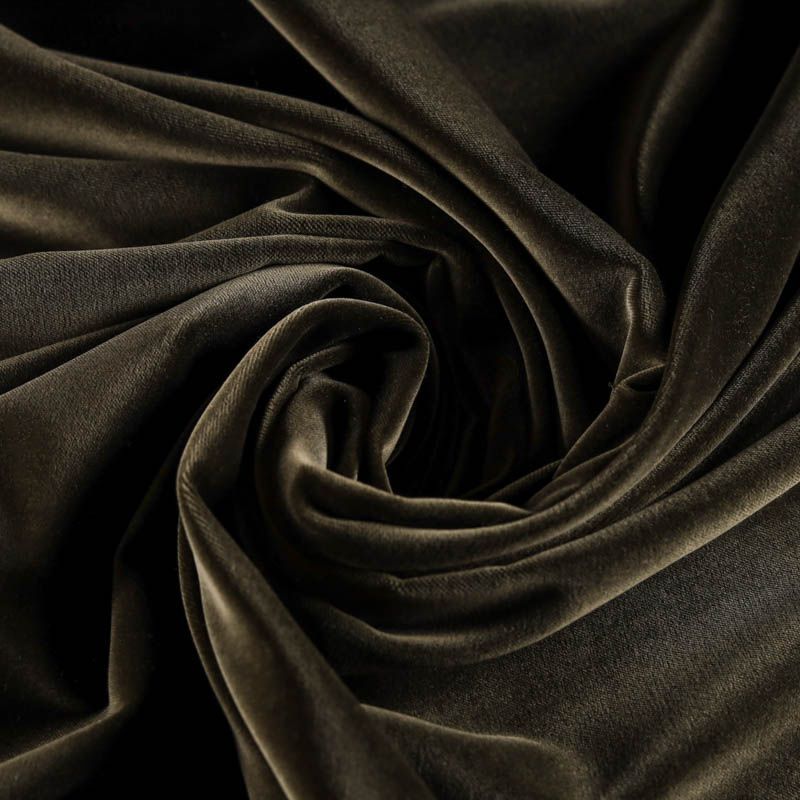 Плотный итальянский бархат из хлопка благородного оттенка хаки с добавлением небольшого количества эластана. Ткань очень приятная на ощупь, поверхность матовая, пластична, но держит форму, а также прочна - идеальна для костюма, жакета, легкого пальто, юбки, жилета, комбинезона, брюк, платья-футляра.