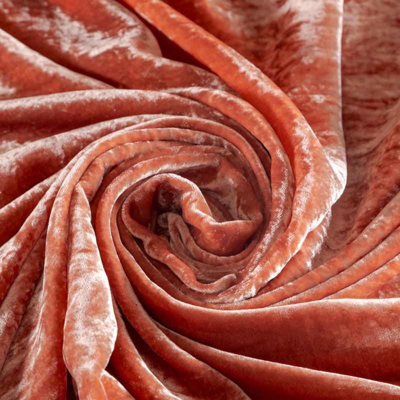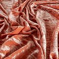 Итальянский бархат на шелковой основе в эффектном терракотовом оттенке. Ткань легкая, пластичная, мягкая, с коротким и блестящим ворсом, имеющим направление, очень приятная на ощупь, прекрасно драпируется. Подойдет для платья, юбки, туники, блузки, комбинезона, свободных брюк и костюма свободного кроя.