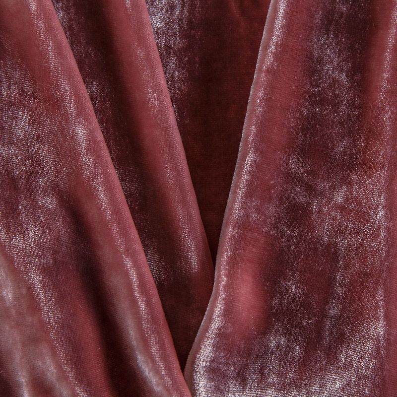 Итальянский бархат из шелка и вискозы. Ткань средней плотности, мягкая и гладкая на ощупь, с легким блеском, хорошо драпируется, струится. Идеальна для пошива платья, юбки, костюма в пижамном стиле, кимоно, туники.