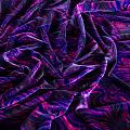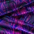 Пластичный, мягкий бархат с абстрактным дизайном в фиолетово-розовых оттенках. Ткань очень приятна на ощупь, не мнется, хорошо тянется за счет эластана в составе и драпируется. Цвет играет отблесками и полутонами. Бархат идеально подходит для пошива вечерних платьев, юбок, костюмов, а также стильных аксессуаров.