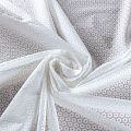 Оригинальный итальянский батист с эффектом деворе на белом фоне. Деворе - это особая вытравка, благодаря которой на ткани появляются полупрозрачные элементы. Ткань очень легкая, прозрачная, приятная на ощупь, нежная, пластичная, хорошо и мягко драпируется, летящая. Батист подойдёт для модных блуз с объёмными рукавами, летних платьев и сарафанов с длинной летящей юбкой, прозрачных рубашек, декорированных объёмными бантами, туник и топов.