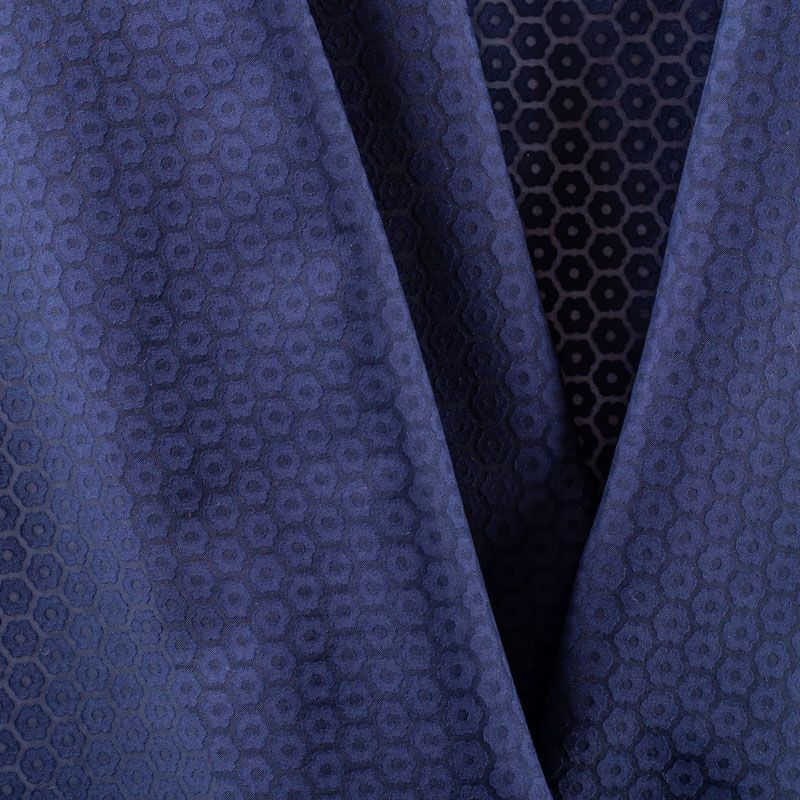 Оригинальный итальянский батист с эффектом деворе на темно-синем фоне. Деворе - это особая вытравка, благодаря которой на ткани появляются полупрозрачные элементы. Ткань очень легкая, прозрачная, приятная на ощупь, нежная, пластичная, хорошо и мягко драпируется, летящая. Батист подойдёт для модных блуз с объёмными рукавами, летних платьев и сарафанов с длинной летящей юбкой, прозрачных рубашек, декорированных объёмными бантами, туник и топов.