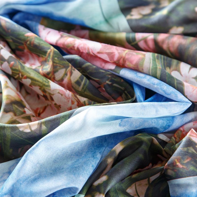Итальянский хлопковый батист с фотопринтом в голубых и зеленых оттенках. Ткань очень легкая, прозрачная, приятная на ощупь, нежная, пластичная, хорошо и мягко драпируется, летящая. Батист подойдёт для модных блуз с объёмными рукавами, летних платьев и сарафанов с длинной летящей юбкой, прозрачных рубашек, декорированных объёмными бантами, туник и топов.
