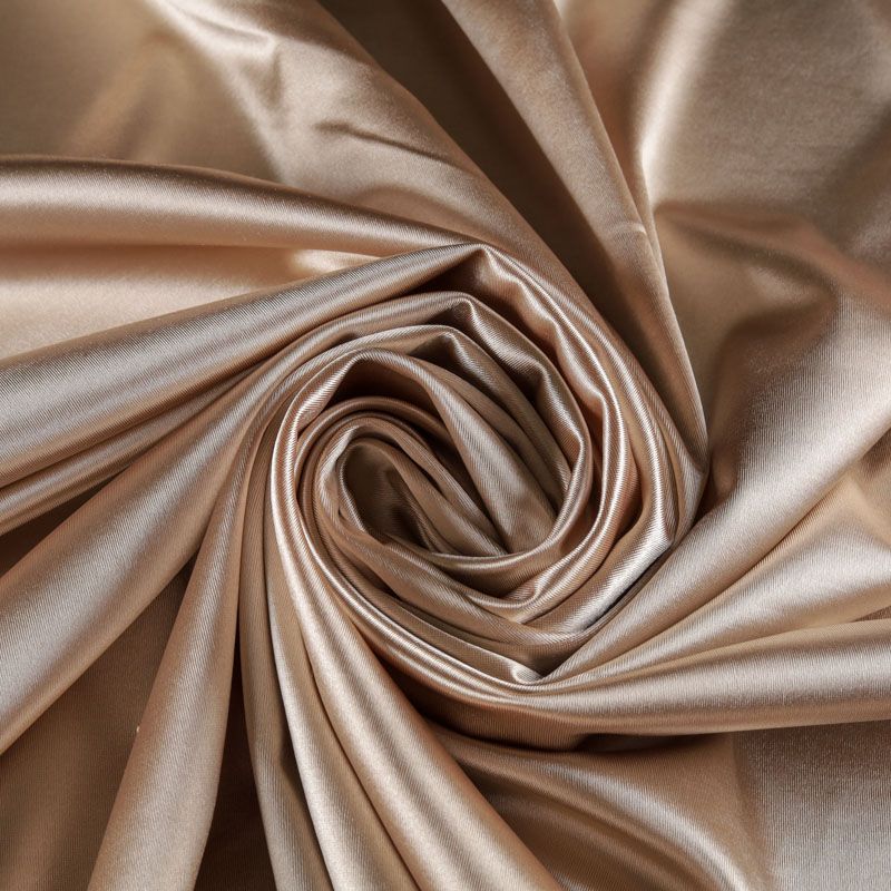 Лицевая сторона ткани с выраженным блеском, очень приятная на ощупь, "скользкая", как шелк. Ткань плотная, отлично тянется, одежда из него не сковывает движения. Хорошо впитывает влагу и быстро высыхает, не вызывет аллергии и раздражения. Подойдет для пошива купальников, парео, пляжных и коктейльных платьев, леггинсов и лосин, костюмов фигуристов, танцоров, гимнастов.