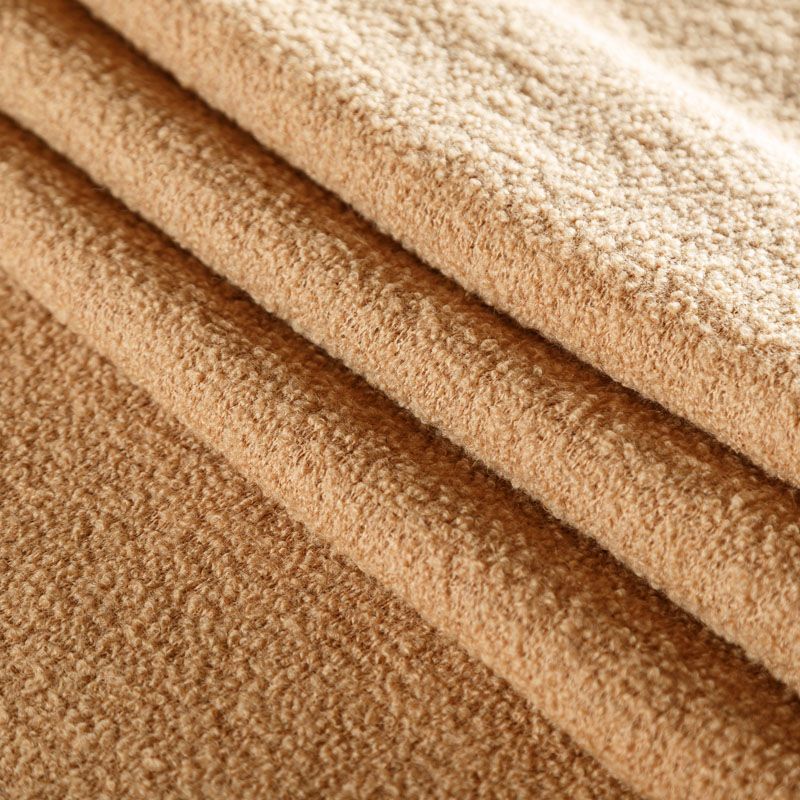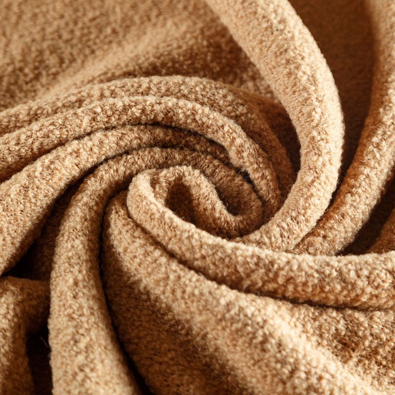 Итальянское шерстяное букле бежевого оттенка. Ткань очень мягкая, достаточно плотная, пластичная, на вид объемная, хорошо держит тепло. Красивая фактура из кудрявого ворса эффектно будет смотреться в таких изделиях как пальто на осень, жакет, жилет, бомбер, куртка-рубашка.