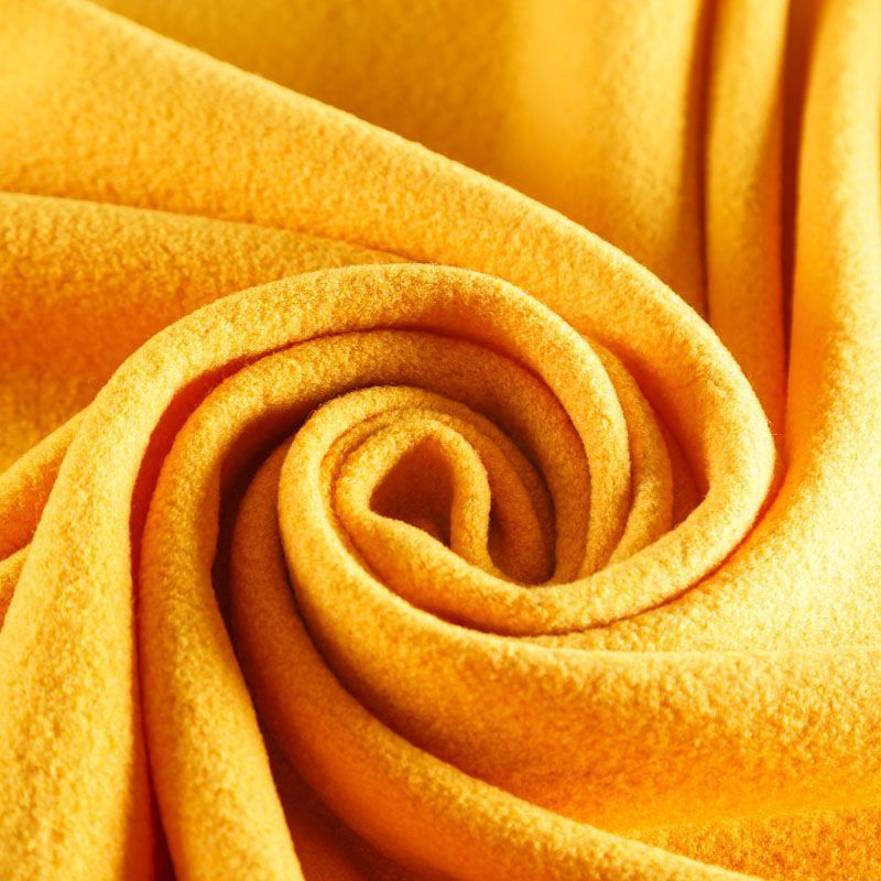 Итальянская мягкая, уютная и теплая шерстяная ткань с буклированной поверхностью желтого оттенка. Хорошо держит форму, пластичная, плотная. Не мнется, отлично драпируется, устойчива к деформации. Отлично подойдет на пальто, кардиган, пончо, бомбер, теплый костюм и другие виды верхней одежды.
