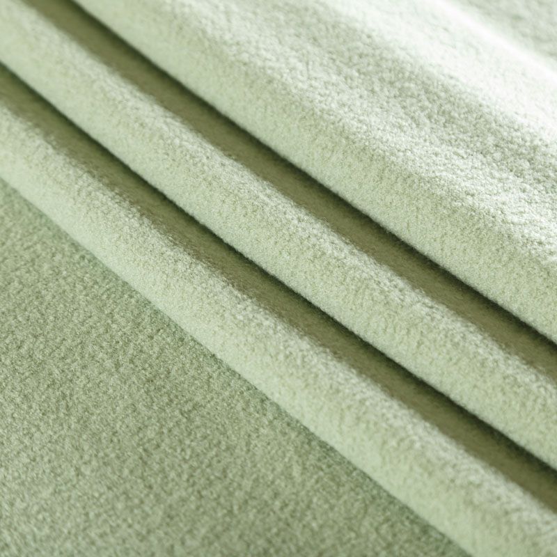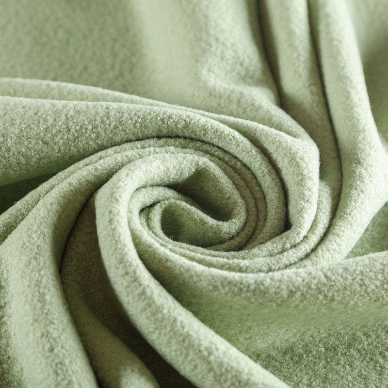 Итальянская мягкая, уютная и теплая шерстяная ткань с буклированной поверхностью светло-зеленого оттенка. Хорошо держит форму, пластичная, плотная. Не мнется, отлично драпируется, устойчива к деформации. Отлично подойдет на пальто, кардиган, пончо, бомбер, теплый костюм и другие виды верхней одежды.
