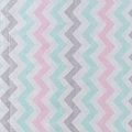 Плотная натуральная ткань с особым принципом переплетения нитей: крест-накрест. Имеет гладкую матовую поверхность чуть шероховатую на ощупь, не тянется, немного просвечивает. Прочная и стойкая к износу, надолго сохраняет яркость красок, не растягивается при стирке, практически не мнется. Нежный принт в пастельных тонах в виде зигзага на белом фоне прекрасно подойдет для пошива постельного белья, изготовления пеленок, бортиков для кроватки и других предметов домашней одежды и интерьера.