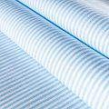 Плотная натуральная ткань с особым принципом переплетения нитей: крест-накрест. Имеет гладкую матовую поверхность чуть шероховатую на ощупь, не тянется, немного просвечивает. Прочная и стойкая к износу, надолго сохраняет яркость красок, не растягивается при стирке, практически не мнется. Рисунок в узкую голубую полоску на белом фоне прекрасно подойдет для пошива постельного белья, изготовления пеленок, бортиков для кроватки, домашней одежды и других предметов интерьера.
