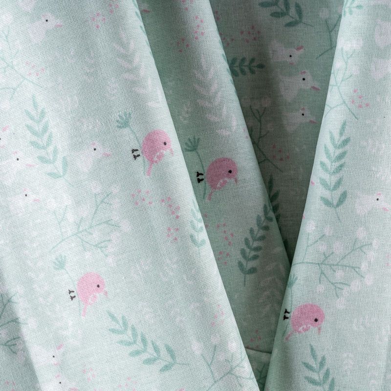 Плотная натуральная ткань с особым принципом переплетения нитей: крест-накрест. Имеет гладкую матовую поверхность, немного шероховатая на ощупь, не тянется, немного просвечивает. Прочная и стойкая к износу, надолго сохраняет яркость красок, практически не мнется. Милый детский принт в виде мультяшных животных на мятном фоне прекрасно подойдет для пошива постельного белья, изготовления пеленок, бортиков для кроватки, домашней одежды и других предметов интерьера.