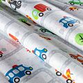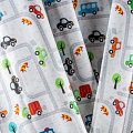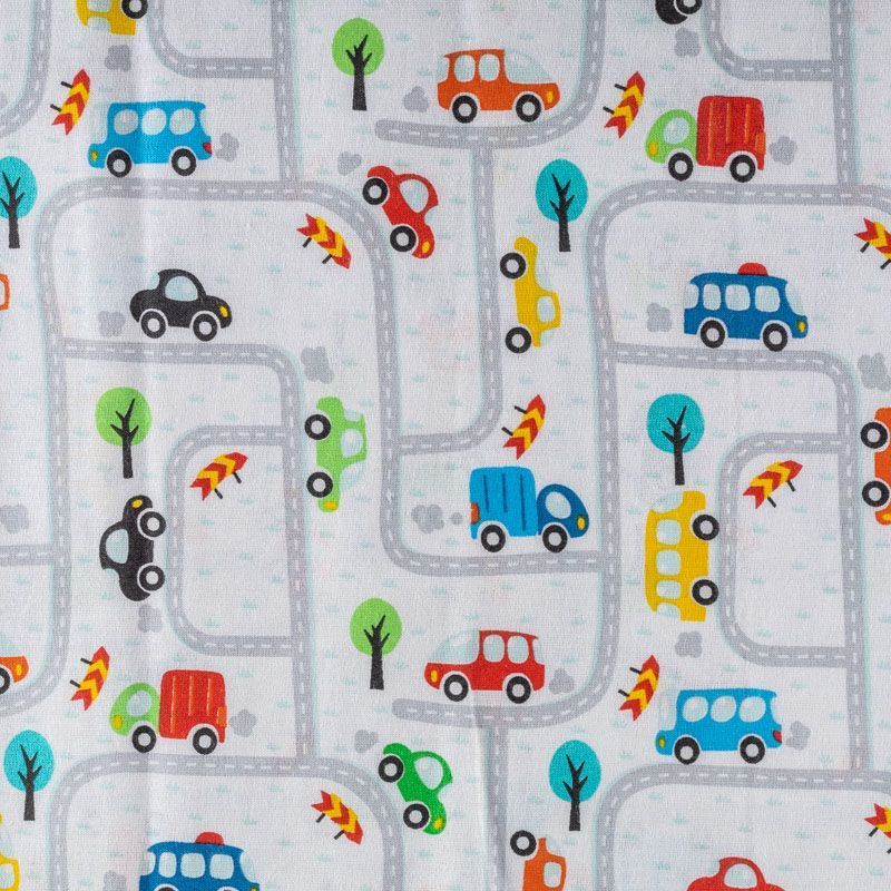 Плотная натуральная ткань с особым принципом переплетения нитей: крест-накрест. Имеет гладкую матовую поверхность, немного шероховатая на ощупь, не тянется, немного просвечивает. Прочная и стойкая к износу, надолго сохраняет яркость красок, практически не мнется. Милый принт в виде игрушечных машинок на белом фоне прекрасно подойдет для пошива постельного белья, изготовления пеленок, бортиков для кроватки, домашней одежды и других предметов интерьера.