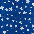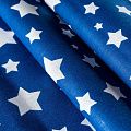 Плотная натуральная ткань с особым принципом переплетения нитей: крест-накрест. Имеет гладкую матовую поверхность чуть шероховатую на ощупь, не тянется, немного просвечивает. Прочная и стойкая к износу, надолго сохраняет яркость красок, не растягивается при стирке, практически не мнется. Принт в виде белых звездочек разного размера на глубоком синем фоне прекрасно подойдет для пошива постельного белья, изготовления пеленок, бортиков для кроватки, домашней одежды и других предметов интерьера.