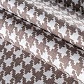 Плотная натуральная ткань с особым принципом переплетения нитей: крест-накрест. Имеет гладкую матовую поверхность чуть шероховатую на ощупь, не тянется, немного просвечивает. Прочная и стойкая к износу, надолго сохраняет яркость красок, не растягивается при стирке, практически не мнется. Рисунок, имитирующий "гусиную лапку" цвета какао на белом фоне, прекрасно подойдет для пошива постельного белья, изготовления пеленок, бортиков для кроватки, домашней одежды и других предметов интерьера.