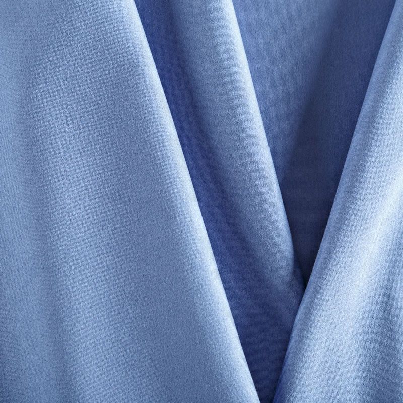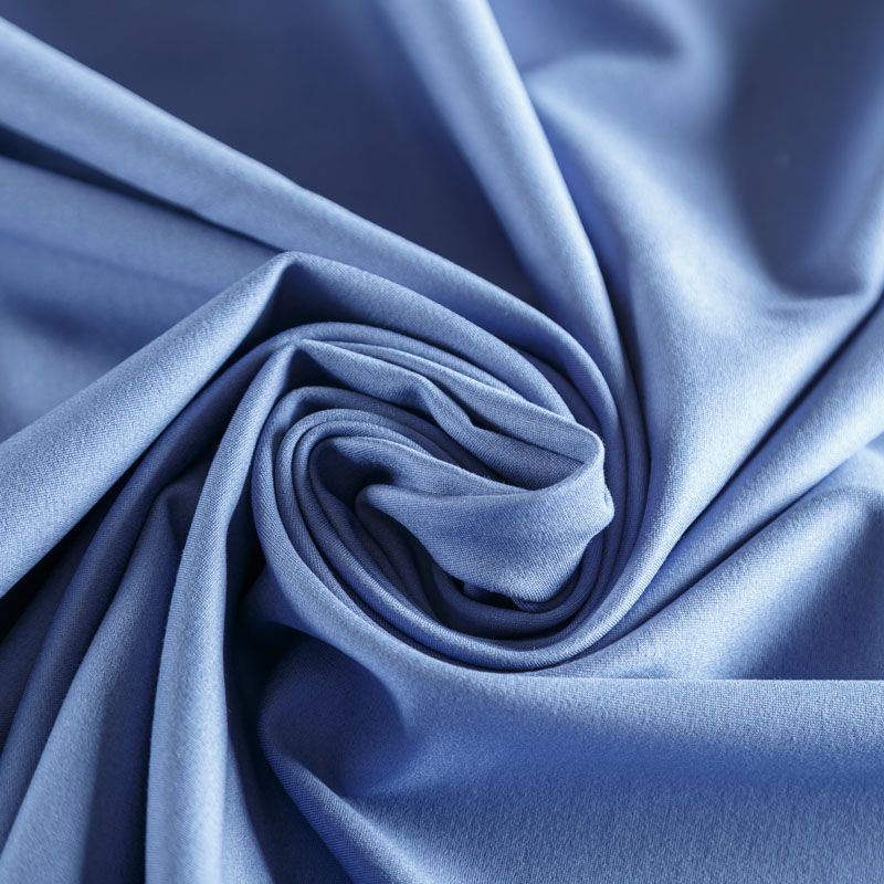 Трикотажное полотно средней плотности. Обе стороны ткани ровные, гладкие. Материал эластичный, упругий, имеет растяжимость по всем сторонам, хорошо держит форму, уютный, приятный к телу и удобный в носке. Подойдет для пошива платьев, юбок, костюмов, жакетов, брюк.