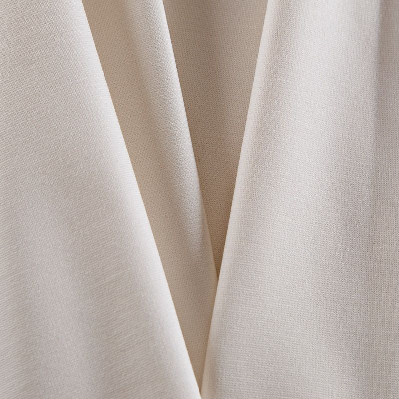 Итальянское вискозное трикотажное полотно высокой плотности. Обе стороны ткани ровные, гладкие. Материал эластичный, имеет растяжимость по всем сторонам, держит форму, уютный, приятный к телу и удобный в носке. Применяется в пошиве платьев, юбок, костюмов, жакетов.