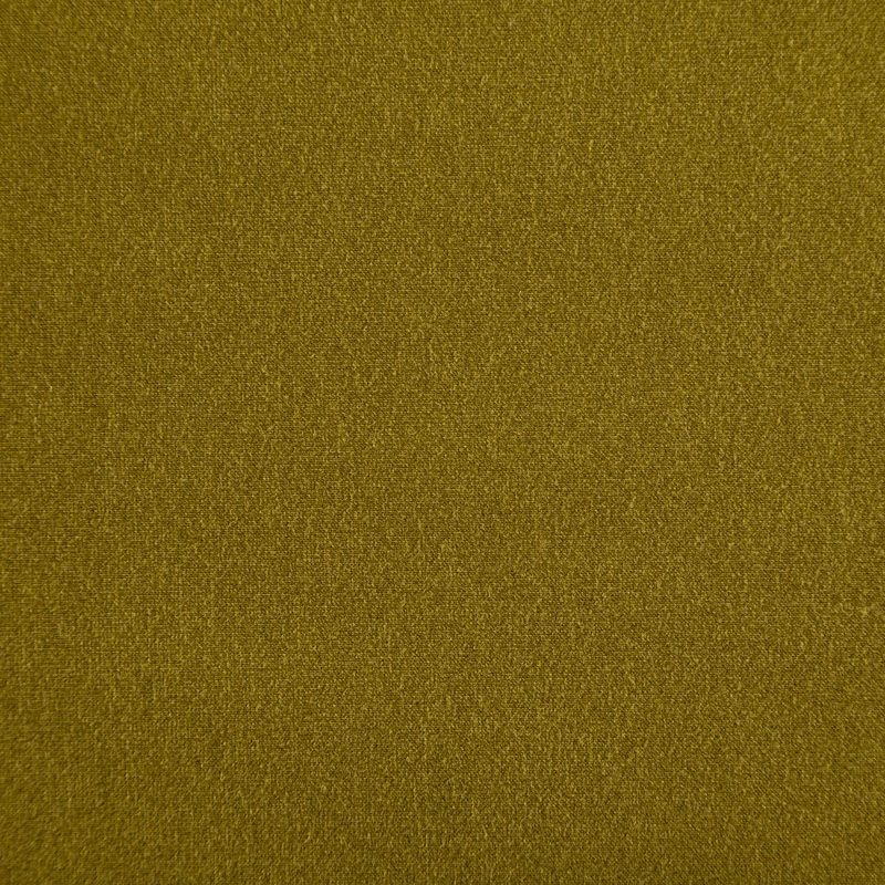 Эластичный, плотный хлопковый трикотаж темного оттенка горчицы. Поверхность ткани гладкая и матовая, с изнанки - с шелковистым мягким ворсом. Материал упругий, имеет растяжимость по всем сторонам, не просвечивается, хорошо держит форму, уютный, приятный к телу и удобный в носке. Применяется в пошиве костюмов, жакетов, кардиганов, платьев и юбок.