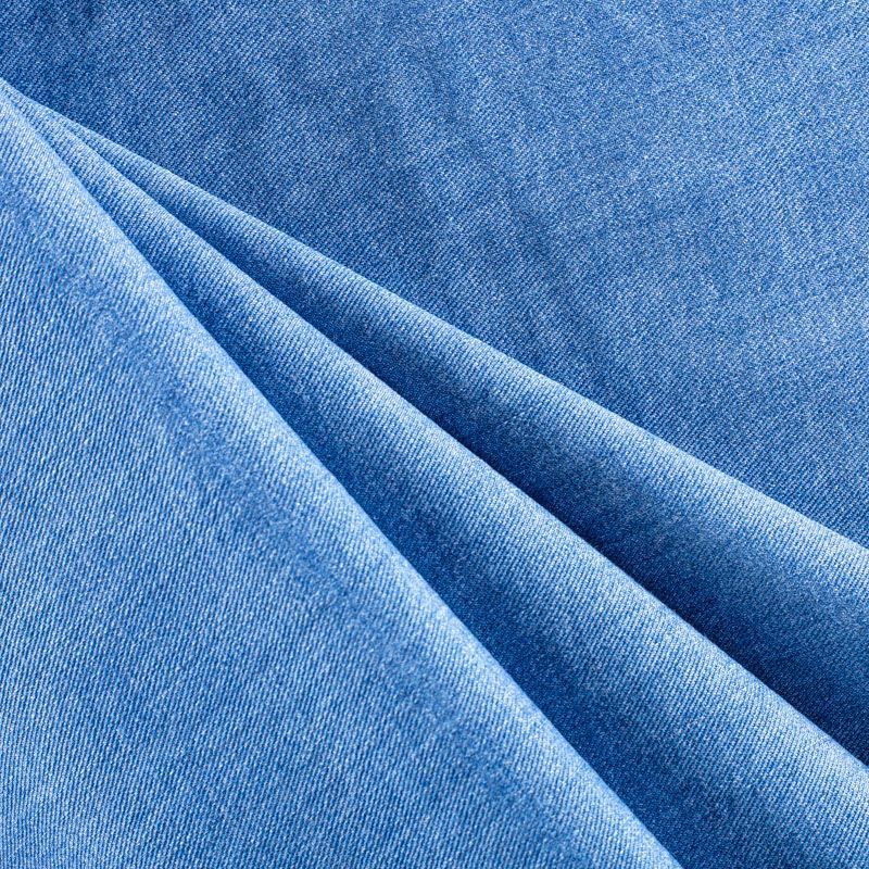 Итальянское джинсовое полотно темно-голубого оттенка. Поверхность ткани матовая, фактурная в диагональный рубчик. Материал имеет высокую плотность, при небольшой толщине, мягкий и приятный на ощупь, немного тянется за счет эластана в составе, обладает устойчивостью к истиранию и механическим повреждениям. Подойдет для пошива рубашек, сарафанов, платьев, юбок, шорт, брюк-джоггеров, лёгких курток и жакетов.