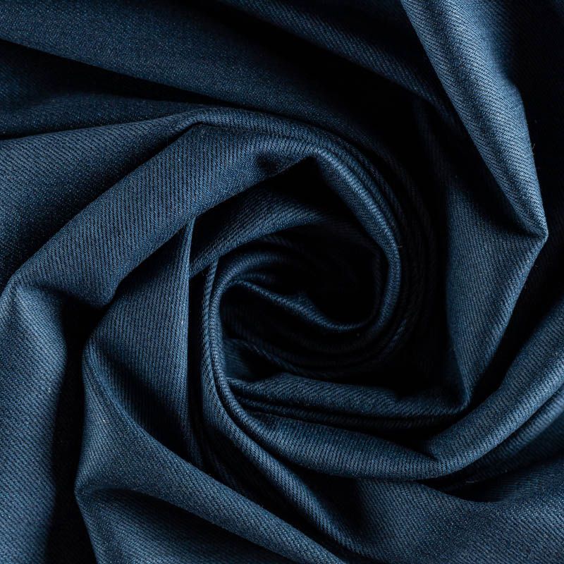 Плотный, хорошо тянется, обладает устойчивостью к истиранию и механическим повреждениям. Применяется для пошива джинсовой одежды облегающего силуэта: брюки, юбки, платья, шорты.