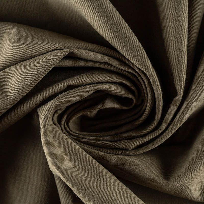 Поверхность матовая, фактурная в диагональный рубчик. Материал имеет высокую плотность, при небольшой толщине, мягкий и приятный на ощупь, обладает устойчивостью к истиранию и механическим повреждениям. Подойдет для пошива рубашек, сарафанов, платьев, юбок, шорт, брюк-джоггеров, лёгких курток и жакетов.