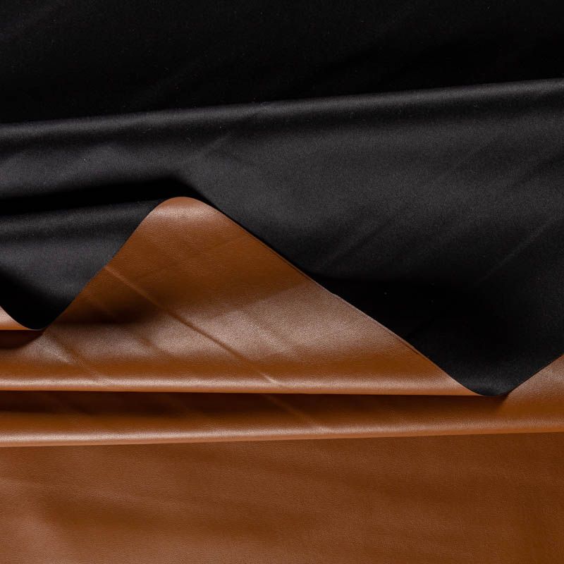 Искусственный материал, имитирующий натуральную кожу, на трикотажной основе. Изнаночная сторона - белая. Экокожа тоньше натуральной, не мнется, пластична, хорошо облегает фигуру. Подойдет для пошива куртки, костюма, платья, юбки, брюк, шорт, комбинезона, сумки, рюкзака.