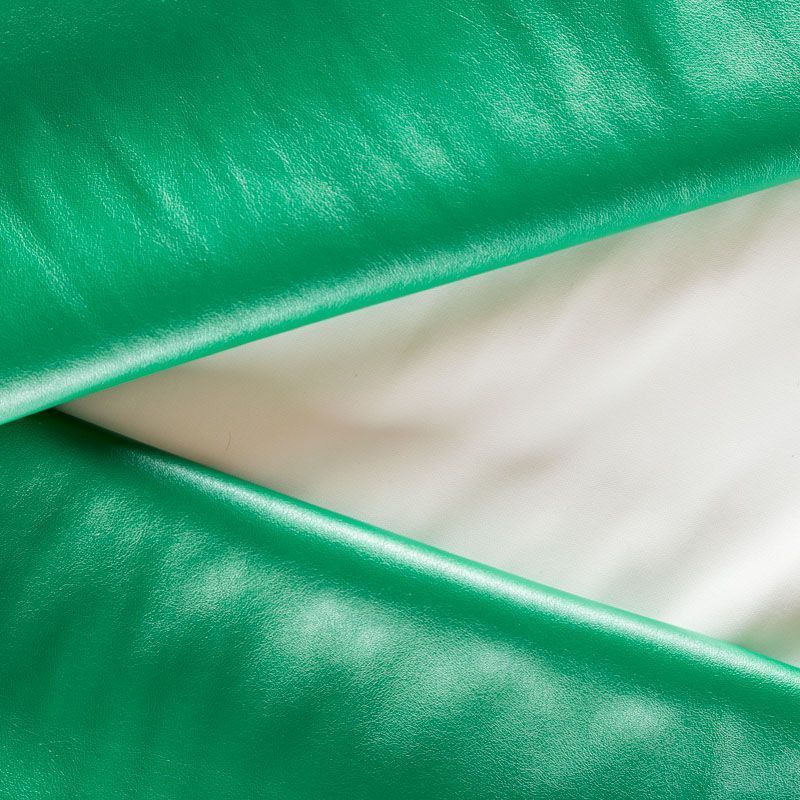 Искусственный материал, имитирующий натуральную кожу, на трикотажной основе. Изнаночная сторона - белого цвета. Экокожа тоньше натуральной, не мнется, пластична, тянется, хорошо облегает фигуру. Подойдет для пошива куртки, костюма, платья, юбки, брюк, шорт, комбинезона, сумки, рюкзака.