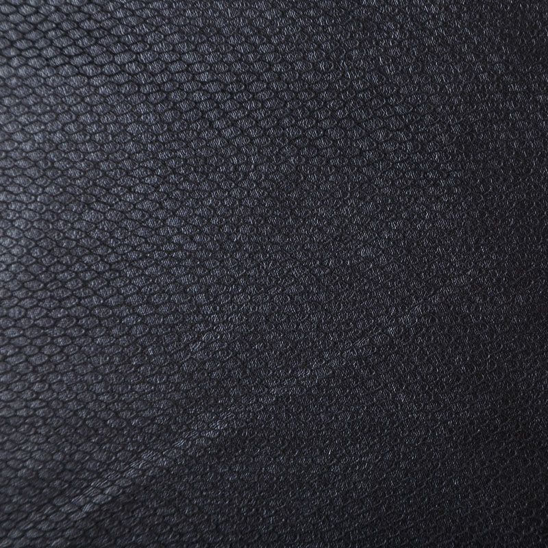 Искусственный материал, имитирующий рисунок змеиной кожи черного цвета на лицевой стороне и черной замши на изнаночной. Приятная и мягкая на ощупь, тянется за счет эластана в составе, не просвечивает, пластичная, хорошо драпируется. Подойдет для пошива куртки, костюма, платья, юбки, брюк, шорт, комбинезона, сумки, рюкзака.