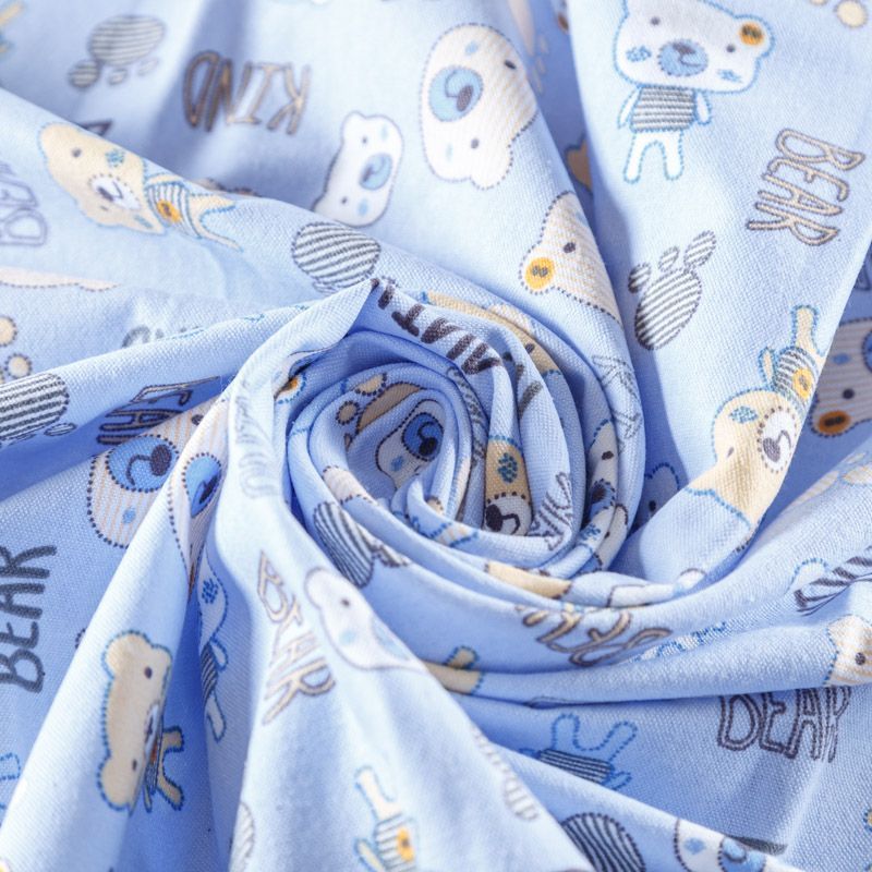 Износостойкий мягкий материал, не раздражает кожу, не садится, отлично впитывает влагу и хорошо удерживает тепло. На лицевой стороне мягкий ворс. Милый детский принт прекрасно подойдет для пошива постельного белья, изготовления пеленок, бортиков для кроватки, домашней одежды, пижамы и других предметов интерьера.