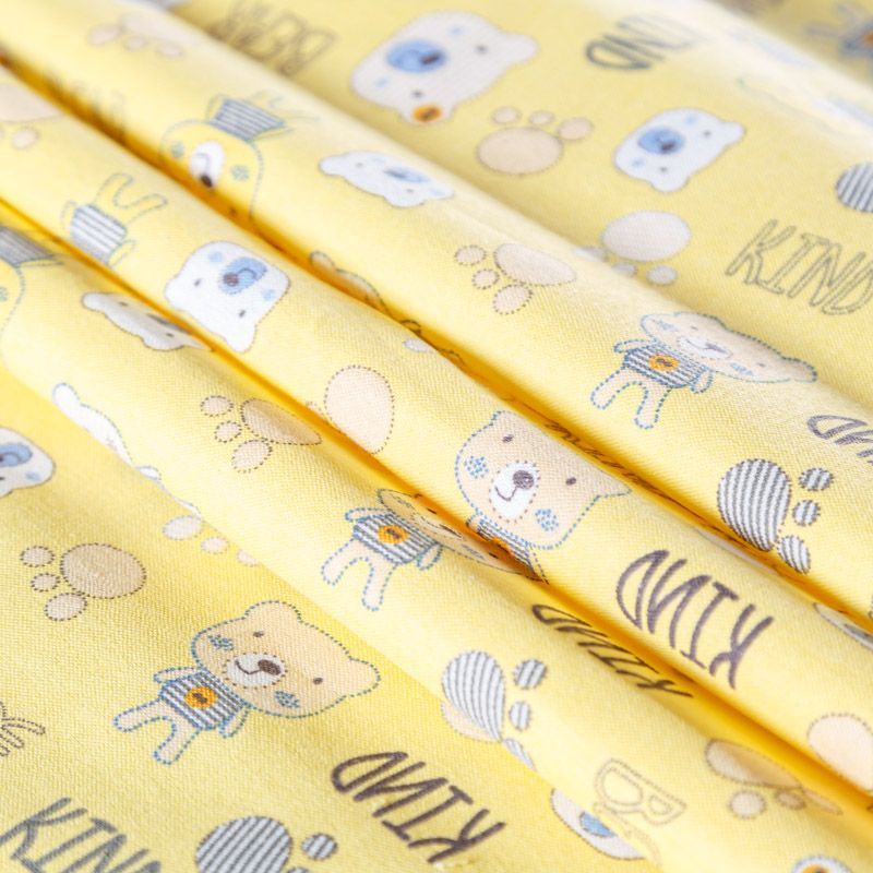 Износостойкий мягкий материал, не раздражает кожу, не садится, отлично впитывает влагу и хорошо удерживает тепло. На лицевой стороне мягкий ворс. Милый детский принт прекрасно подойдет для пошива постельного белья, изготовления пеленок, бортиков для кроватки, домашней одежды, пижамы и других предметов интерьера.