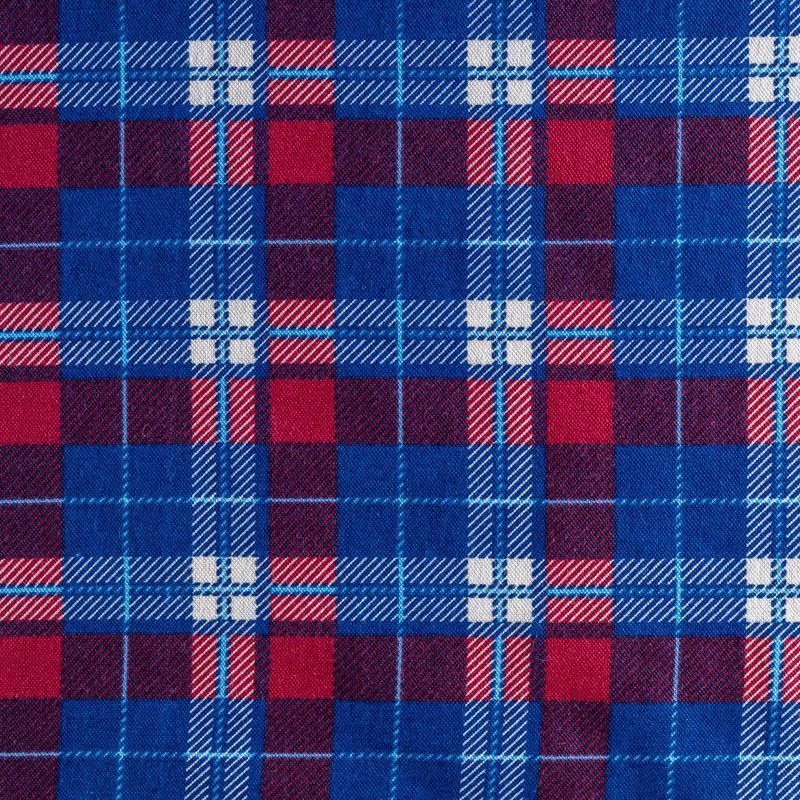 Износостойкий мягкий материал, не раздражает кожу, не садится, отлично впитывает влагу и хорошо удерживает тепло. На внутренней стороне мягкий ворс. Классический клетчатый принт с красно-синих оттенках прекрасно подойдет для пошива домашней одежды, теплой пижамы, халата, рубашек различного фасона.