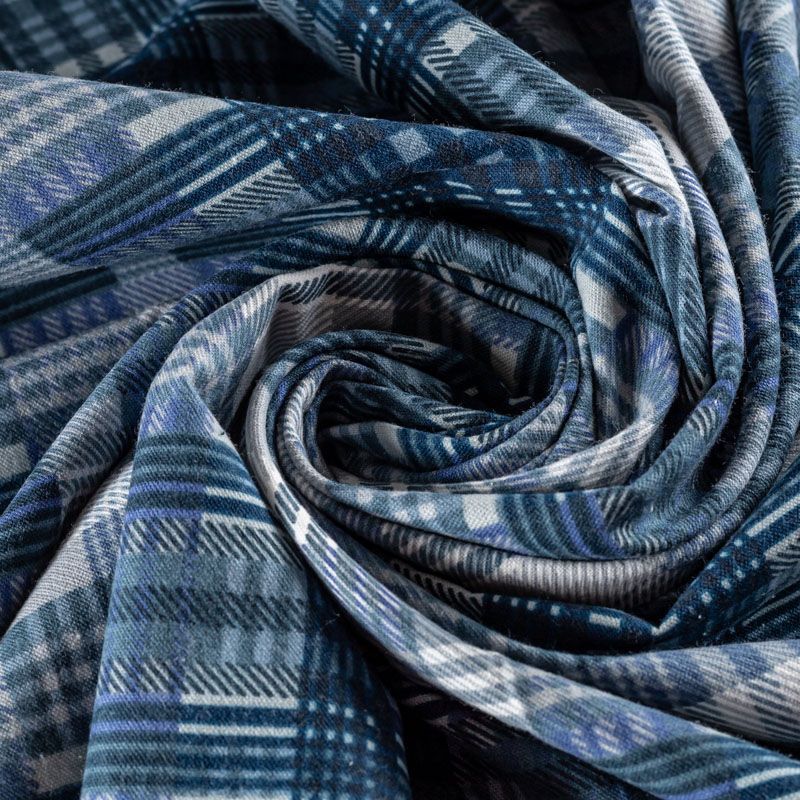Износостойкий мягкий материал, не раздражает кожу, не садится, отлично впитывает влагу и хорошо удерживает тепло. На лицевой стороне мягкий ворс. Классический клетчатый принт с серо-голубых оттенках прекрасно подойдет для пошива домашней одежды, теплой пижамы, халата, рубашек различного фасона.