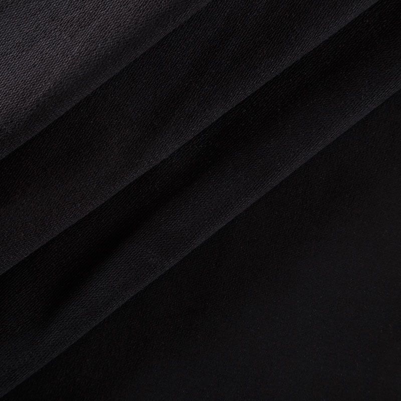 Плотный, но мягкий эластичный трикотаж. Лицевая сторона гладкая, без блеска, мелкой вязки. Изнанка – с небольшим однородным ворсом или петля. Прекрасный вариант для пошива платьев и костюмов, легких толстовок, свитшотов, спортивной, детской и  домашней одежды.