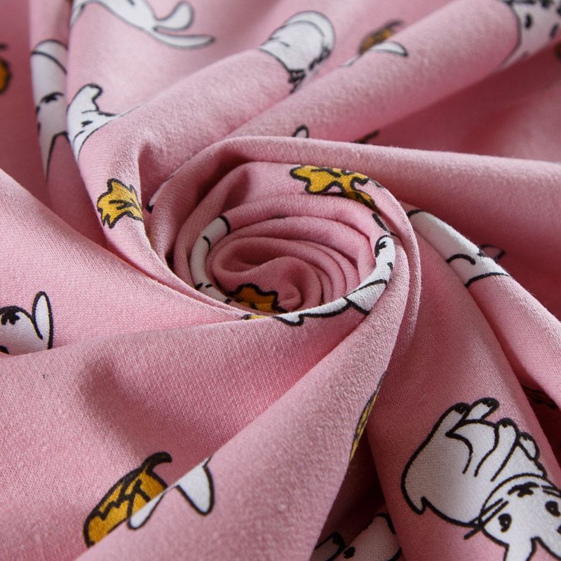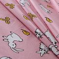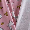 Итальянский хлопковый мягкий эластичный трикотаж средней плотности. Лицевая сторона гладкая, без блеска, мелкой вязки с детским принтом. Изнанка – с небольшим однородным ворсом или петля. Прекрасный вариант для пошива платьев и костюмов, легких толстовок, свитшотов, спортивной, детской и  домашней одежды.