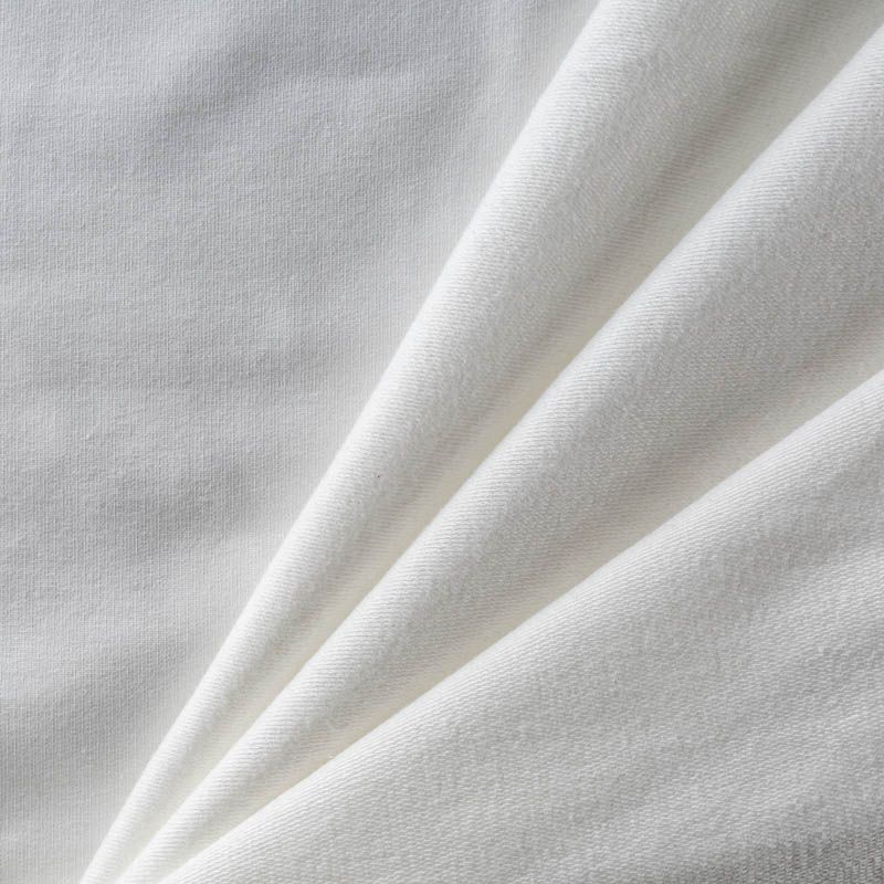 Плотный, но мягкий эластичный трикотаж. Лицевая сторона гладкая, без блеска, мелкой вязки. Изнанка – с небольшим однородным ворсом или петля. Прекрасный вариант для пошива платьев и костюмов, легких толстовок, свитшотов, спортивной, детской и  домашней одежды.