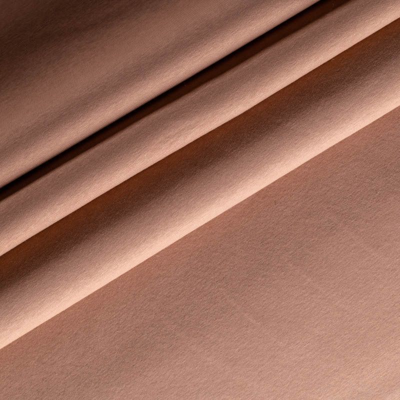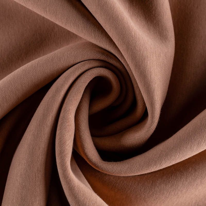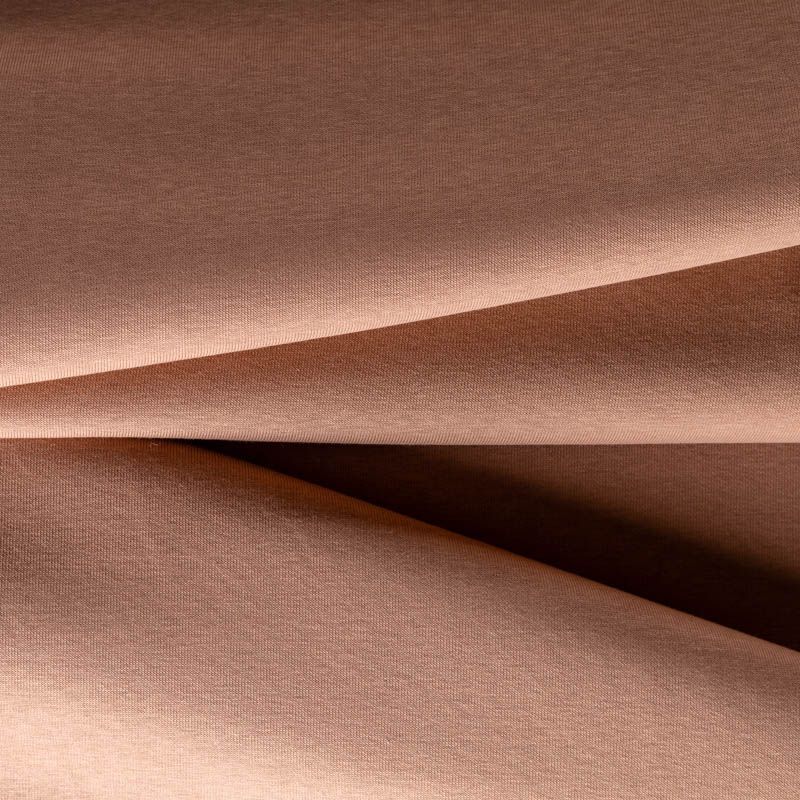 Плотный, но легкий и мягкий, с начесом по изнанке. Ткань хорошо тянется, прочная и износостойкая. Лицевая сторона имеет выраженную трикотажную структуру. Подходит для пошива утепленных спортивных костюмов, свитшотов, джемперов.