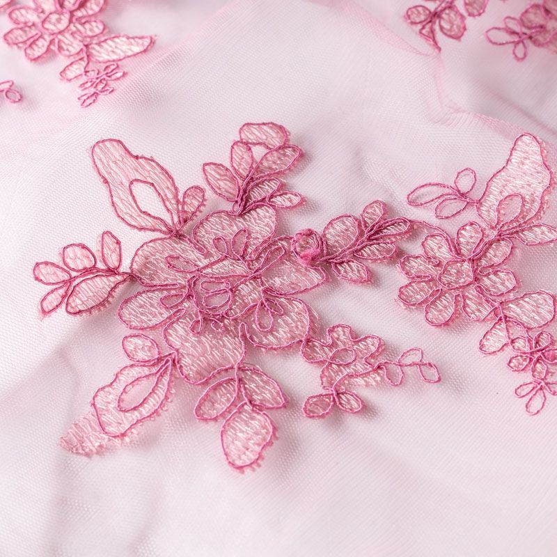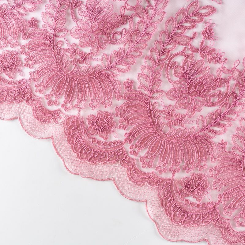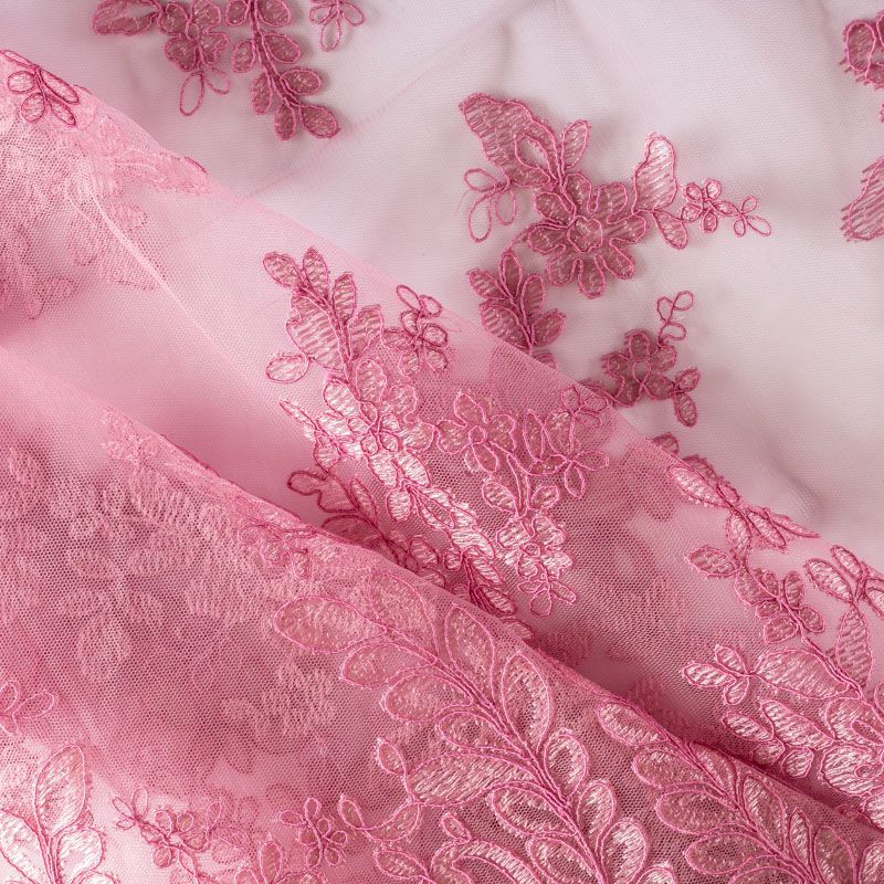Вышивка на сетке приглушенного розового оттенка с крупным флористическим узором. Полотно мягкое, легкое и пластичное, хорошо тянется. Сетка не жесткая, приятная к телу. Узор вышит мягкой пряжей, образуя красивую фактуру, имитирующую ручную вышивку, и оформлен кордовой нитью. С обеих сторон ткань украшена симметричными фестонами, что придает полотну законченный и нарядный вид. Великолепно будет смотреться в нарядном вечернем платье, платье на выпускной бал, в блузках, топах. Набирается для изделя объемом.