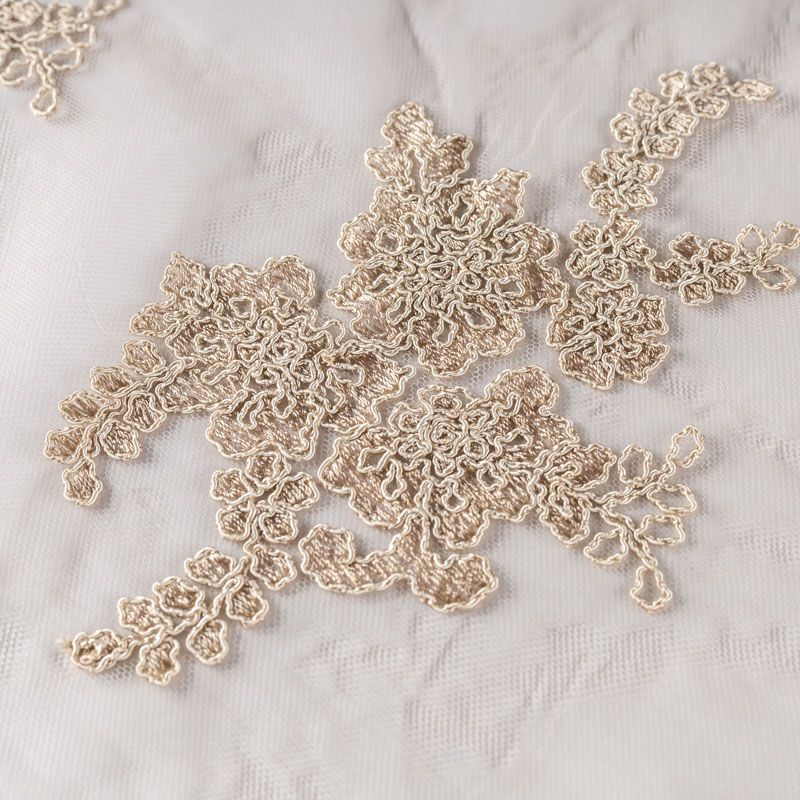 Вышивка на сетке светлого оттенка фисташки с флористическим узором. Полотно мягкое, легкое и пластичное, хорошо тянется. Сетка не жесткая, приятная к телу. Узор вышит мягкой пряжей, образуя красивую фактуру, имитирующую ручную вышивку, и оформлен кордовой нитью. С обеих сторон ткань украшена симметричными фестонами, что придает полотну законченный и нарядный вид. Великолепно будет смотреться в нарядном вечернем платье, платье на выпускной бал, в блузках, топах. Набирается для изделя объемом.