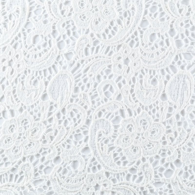 Итальянский хлопковый гипюр-макраме представляет собой ажурное полотно, имеющее рельефную текстуру с цветочным ажурным плетением по всей ширине. Материал прозрачный на теле и на просвет, требуется подклад. Всегда актуален при создании утончённых и роскошных нарядов, придавая им дороговизны и оригинальности. Может использоваться для пошива платьев, костюмов прямого кроя, изготовления декоративных элеметов.