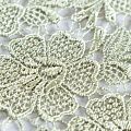 Гипюр-макраме представляет собой ажурное полотно, имеющее рельефную текстуру с цветочным ажурным плетением по всей ширине и фестонами по обе стороны кромок. Материал прозрачный на теле и на просвет, требуется подклад. Всегда актуален при создании утончённых и роскошных нарядов, придавая им дороговизны и оригинальности. Может использоваться для пошива платьев, костюмов прямого кроя, изготовления декоративных элеметов. Набирается на изделие объемом.