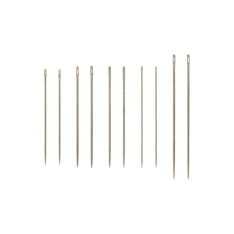 Набор игл для ручного шитья и наметки, вышивания. Иглы сделаны из высокоуглеродистой стали с идеальной гладкой поверхностью и никелированным покрытием, которое защищает иглу от коррозии и окисления. Ушки внутри игл отполированы и не имеют зацепок, поэтому нить не будет рваться при работе. Размер игл по 2 штуки: