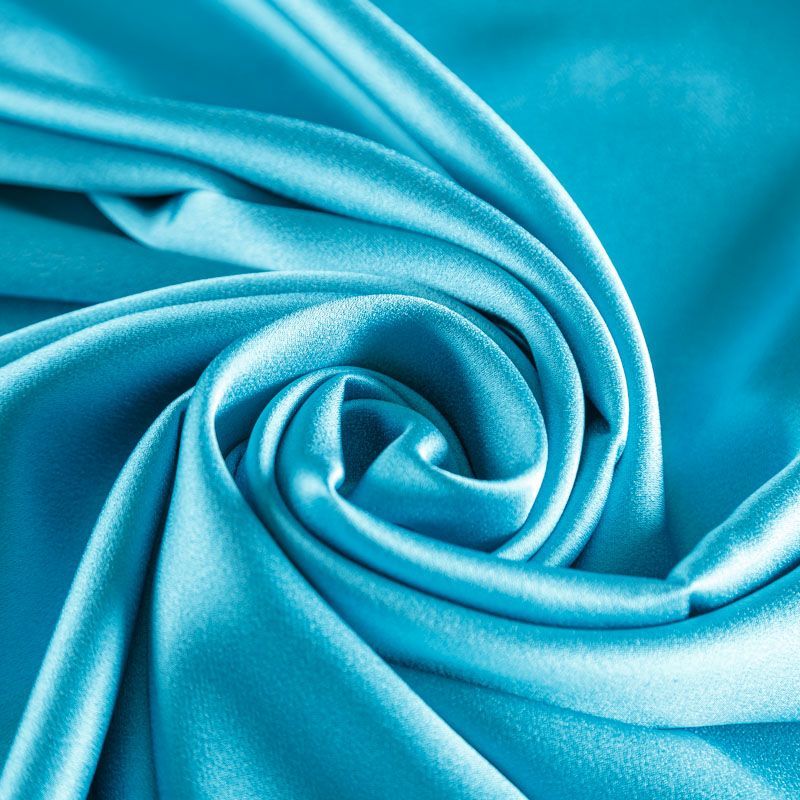 Итальянская ткань кади сине-зеленого оттенка. Кади — это креп-атлас с красивым глянцевым блеском. Ткань с плотной фактурой, роскошно ниспадает, очень хорошо тянется, изумительно садится по фигуре и шикарно смотрится в изделии. Она хорошо драпируется, эффектно облегает. Подходит для пошива удлиненных платьев с драпировками, платья-футляра, брюк палаццо, юбки-карандаш, жакета, туники, кроп-топа, а также для вечерних, свадебных и  выпускных платьев и костюмов.