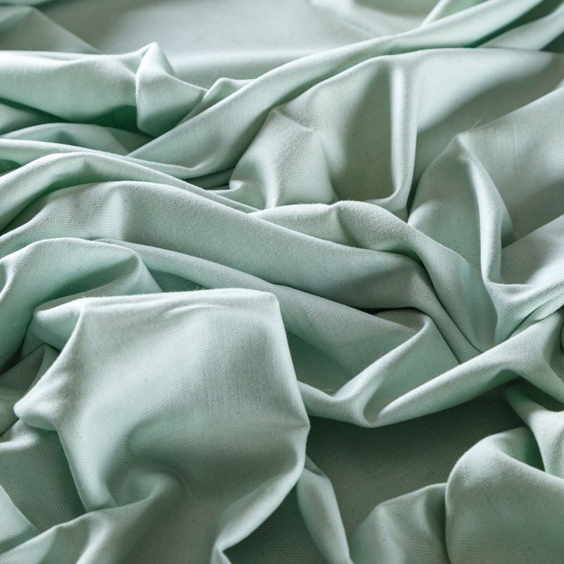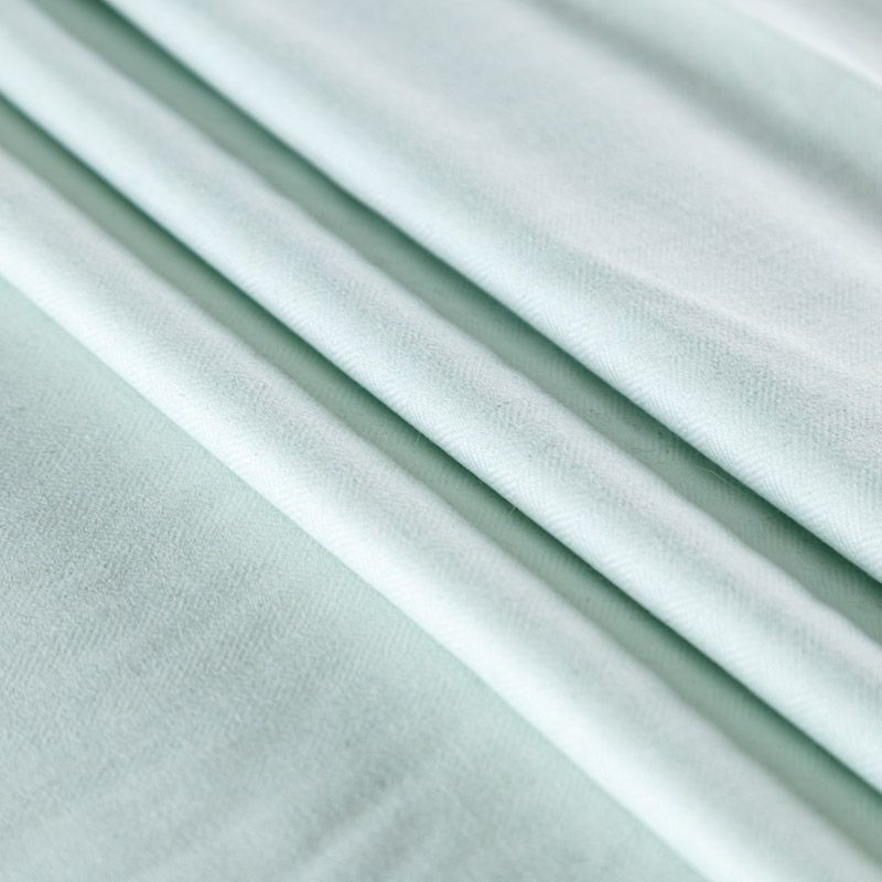 Итальянский пальтовый кашемир в ментоловом оттенке. Ткань мягкая, пластичная, приятная на ощупь, гибкая, средней толщины, средней плотности. Поверхность фактурная в "елочку", имеет короткий ворс. Подойдет для пошива пальто, куртки, жакета, парки, кейпа, жакета или пончо.