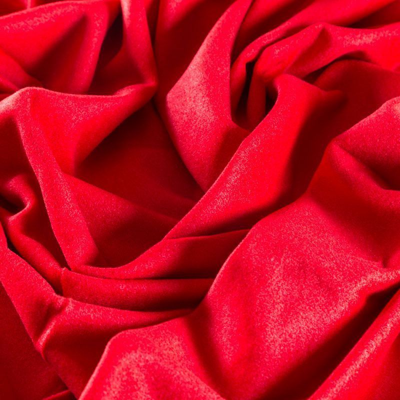 Итальянский пальтовый кашемир в ярком красном оттенке. Ткань мягкая, пластичная, приятная на ощупь, гибкая, средней толщины, при этом высокой плотности. Поверхность имеет короткий ворс. Подойдет для пошива пальто, куртки, жакета, парки, кейпа, жакета или пончо.
