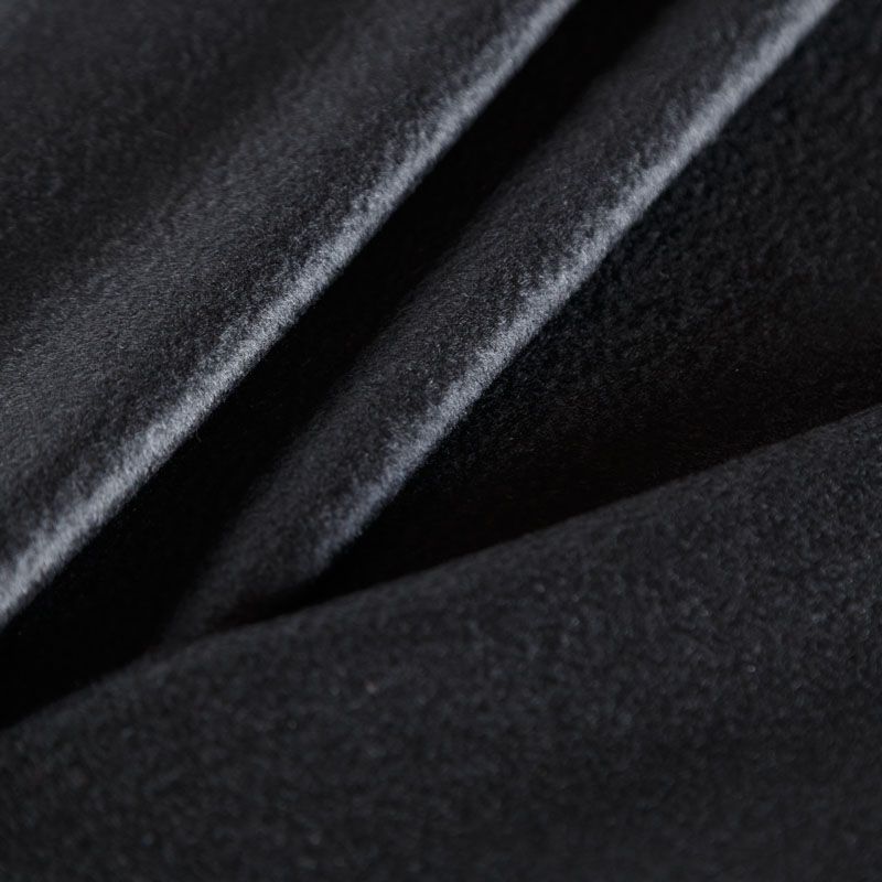 Итальянский пальтовый кашемир в черном цвете. Ткань необычайно мягкая, приятная на ощупь, гибкая, средней толщины. Поверхность имеет короткий ворс и красивый, неповторимый, присущий кашемирам шелковистый отлив. Подойдет для пошива пальто, куртки, жакета, парки, кейпа, жакета или пончо.
